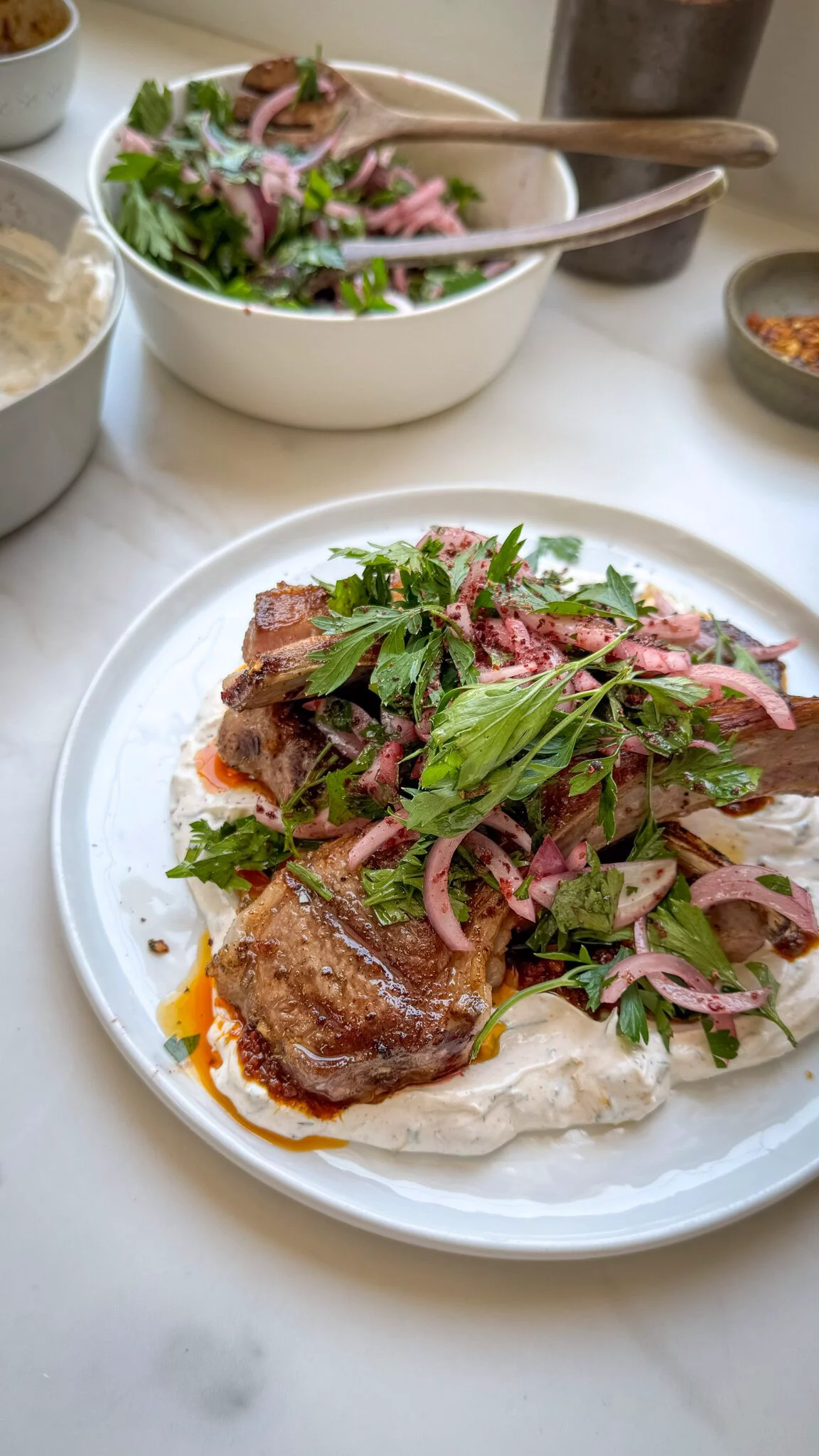 Seared Lamb Chops with Whipped Feta