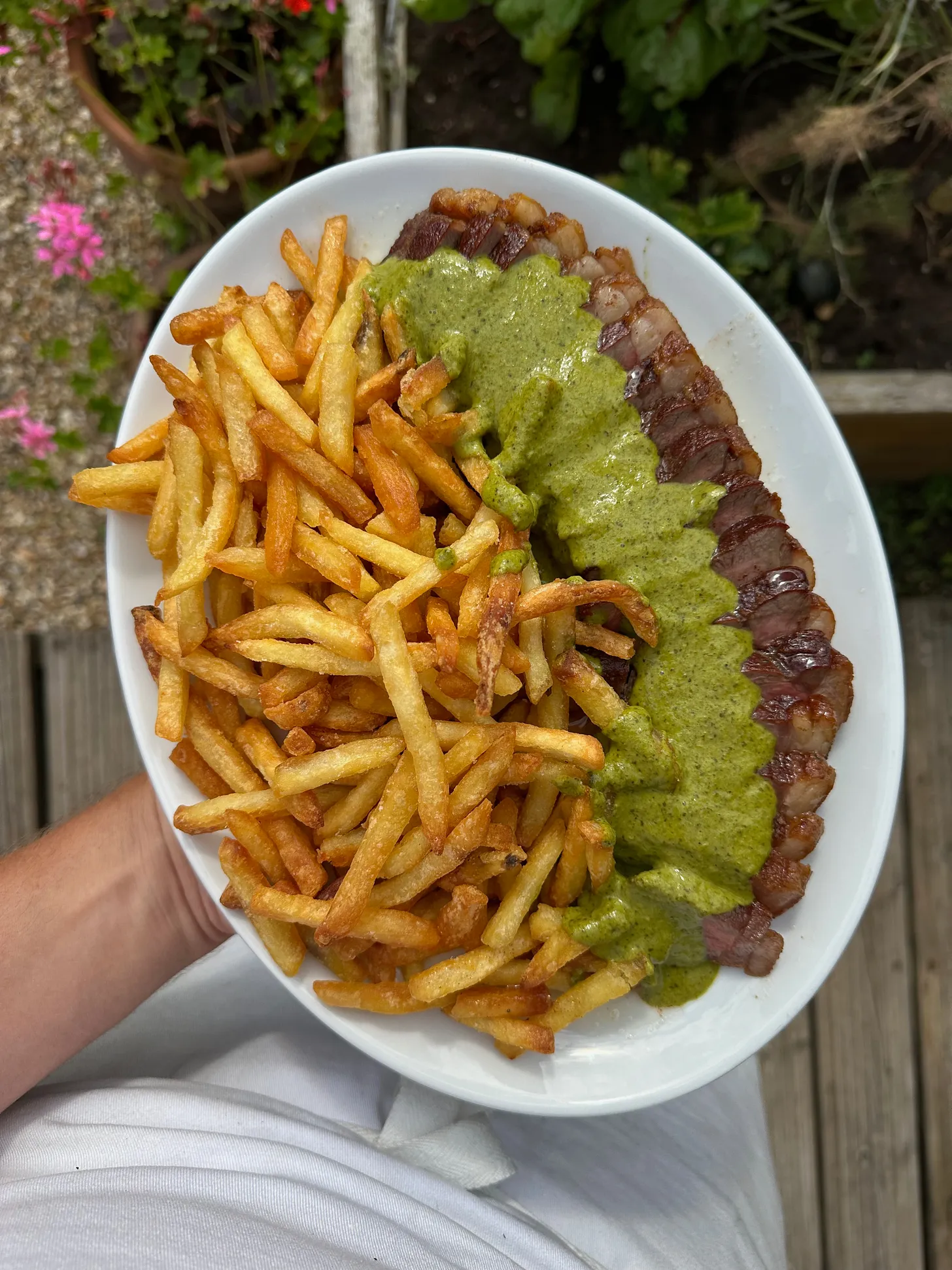 Our classes are like FaceTiming a chef who’s totally focused on you. Whether you're working with a tiny apartment kitchen or a full-on culinary setup, we’ve got two styles to match your space and vibe: Coaching Classes (for 1-7 Kitchens) This is your hands-on moment. You’re doing the cooking—your Chef instructor is guiding you through every step, live and in real time. From chopping to plating, they’re talking you through it all, sharing tips, tricks, and tweaks just for you. They’re not cooking alongside you—they’re 100% focused on your process, like a culinary coach in your corner. It’s personal, interactive, and all about helping you level up. Demo Classes (for 8+ kitchens) In demo-style classes, your Chef instructor does the cooking while you watch, learn, and ask questions. Perfect for bigger spaces or group setups, these sessions are packed with pro techniques, flavor-building secrets, and plating inspiration. You’ll walk away with new skills and a serious craving to recreate what you just saw. Add-on ingredient kits (delivered 1-5 days before your class) Want to skip the grocery run? Add on our ingredient kit delivery and get everything you need. Each kit serves two and arrives 1–5 days before your class, hand-delivered to your door. We customize every kit to fit your dietary needs and allergy preferences, so you can cook with confidence. Once you book your class with kits added on, we’ll reach out to confirm your delivery address(es) and any special requests. Ingredients you'll need for this class: Steak (ribeye, NY strip, or hanger steak; ~8–10 oz per person) Russet potatoes (1–2 large per person) Neutral oil (avocado, grapeseed, or vegetable) Unsalted butter Garlic cloves Fresh thyme or rosemary Kosher salt Freshly ground black pepper Flaky finishing salt (optional but very French) Flat-leaf parsley Chives Tarragon Capers Shallot Dijon mustard Red wine vinegar or lemon juice Extra-virgin olive oil Kosher salt Freshly ground black pepper